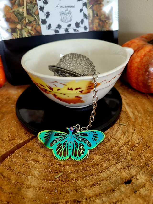 Lot infusion, sa tasse, sa boule à thé avec breloque papillon