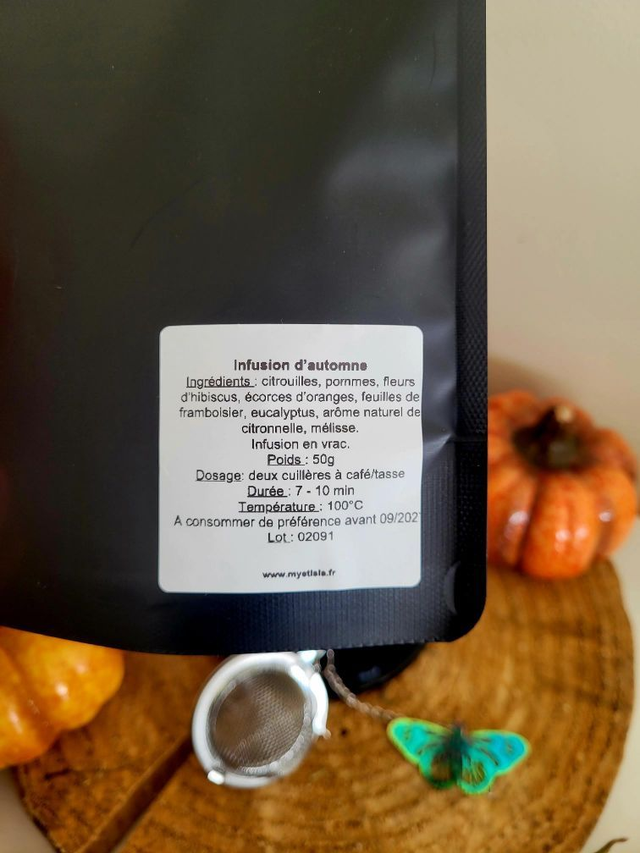 Plongez dans la douceur de l’automne avec ce lot infusion en vrac 50 g, mêlant citrouille, pomme, fleurs d’hibiscus, orange, framboisier, citron et mélisse.