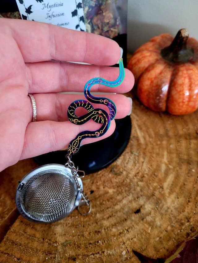 Lot infusion, sa tasse, sa boule à thé avec breloque serpent