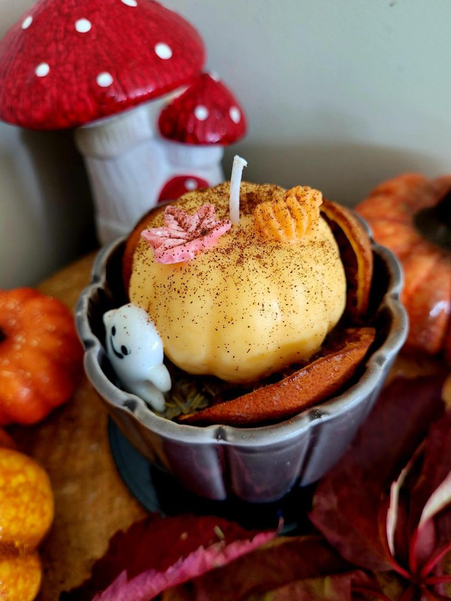 Le Mug à Thé Bougie combine gourmandise et magie : son fondant citrouille diffuse des notes chaleureuses, sublimées par des tranches d’orange et un saupoudrage de cannelle.