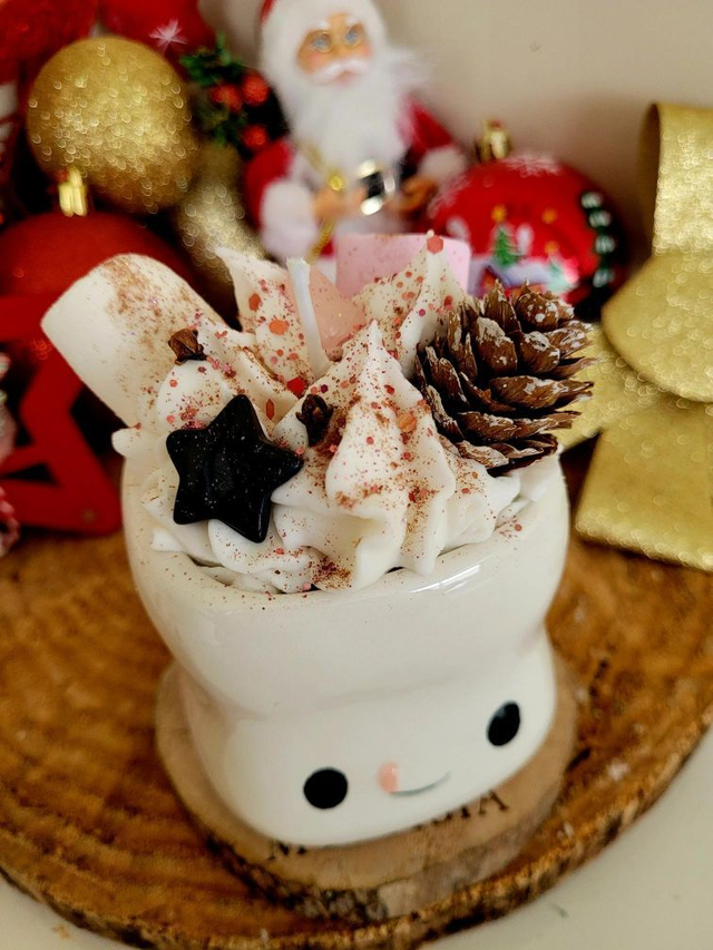 Succombez à la douceur de cette bougie en forme de chamalow, coulée à la main en cire de soja bio dans un style chantilly gourmand et féerique. Chaque bougie est ornée d’une étoile en obsidienne noire, symbole de protection et d’ancrage, ainsi que de vrais chamalows disposés avec soin pour ajouter une touche ludique et magique.