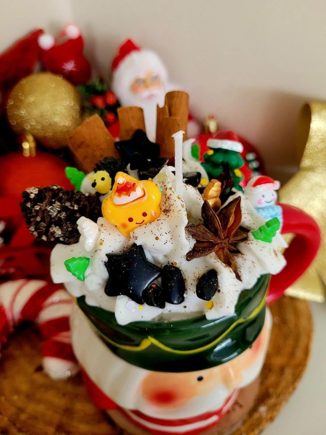 Cette bougie XL, inspirée de la magie du Père Noël, diffuse une ambiance chaleureuse et enchantée dès qu’elle est allumée. Sa texture chantilly lui donne un aspect gourmand et féerique, comme un souffle venu tout droit des ateliers du pôle Nord. Au cœur de la cire se cache une obsidienne noire étoilée, pierre de protection profonde, qui absorbe les énergies indésirables et renforce votre ancrage durant la saison de Yule.