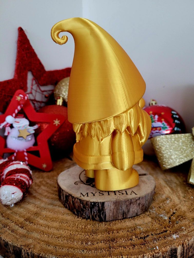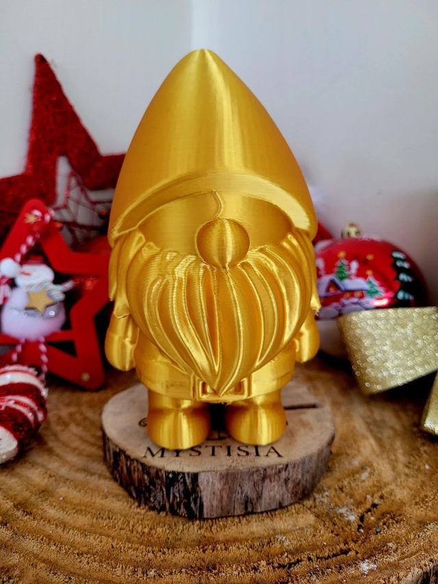 Ce gnome de Noël doré, imprimé en PLA grâce à une impression 3D soignée, apporte une touche douce et féerique à votre décoration hivernale. Sa forme généreuse et ses détails délicats en font un petit compagnon chaleureux, parfait pour une étagère, un bureau ou un coin du salon.