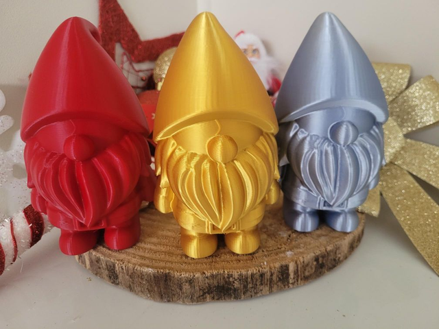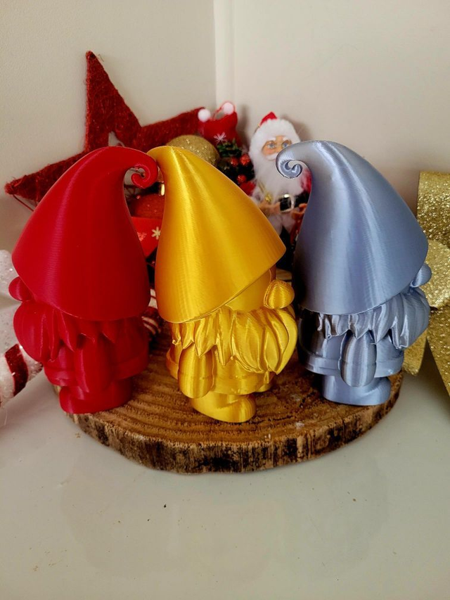 Découvrez un trio de gnomes de Noël imprimés en PLA grâce à une impression 3D précise, leur offrant une forme douce, généreuse et pleine de charme. Chaque gnome mesure 10 cm, une taille idéale pour décorer une étagère, un bureau ou un coin près du sapin.